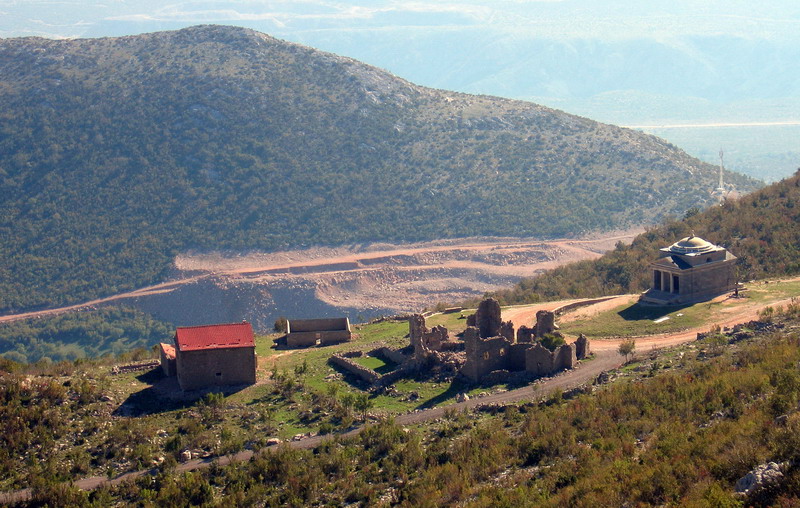 Ako sme tak naberali výšku, pamätné tabuľky venované padlým vodičom vystriedali tabuľky s menami padlých bojovníkov za svoju vlasť. Minuli sme zrúcaniny a podivnú stavbu pripomínajúcu miniatúru mešity. Boli na nej stopy po zásahoch strelnými zbraňami.