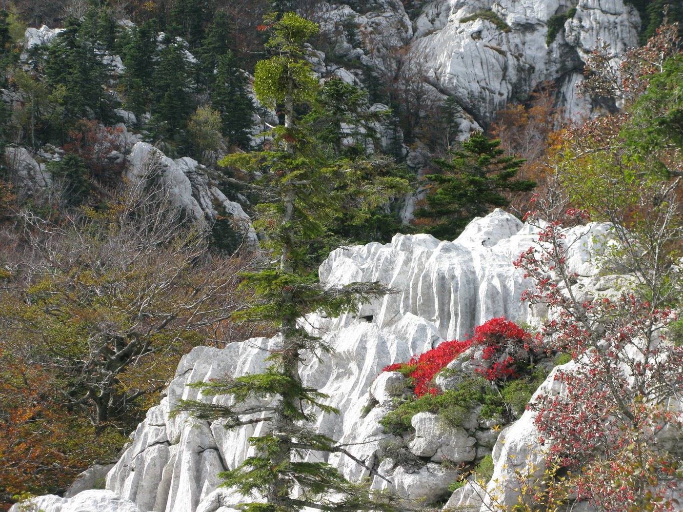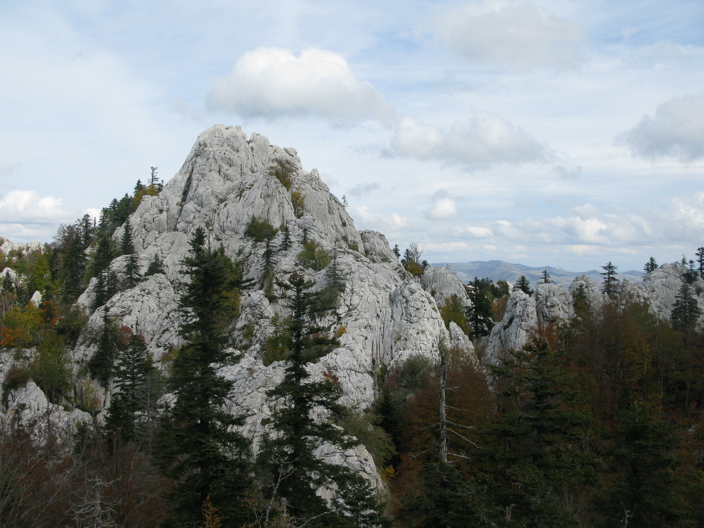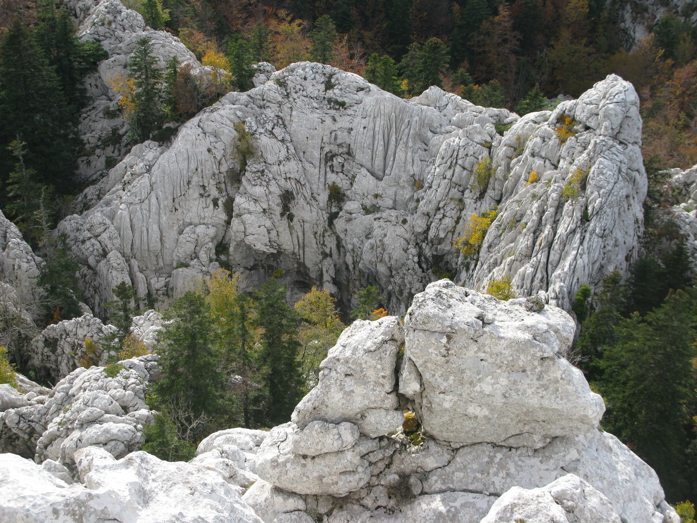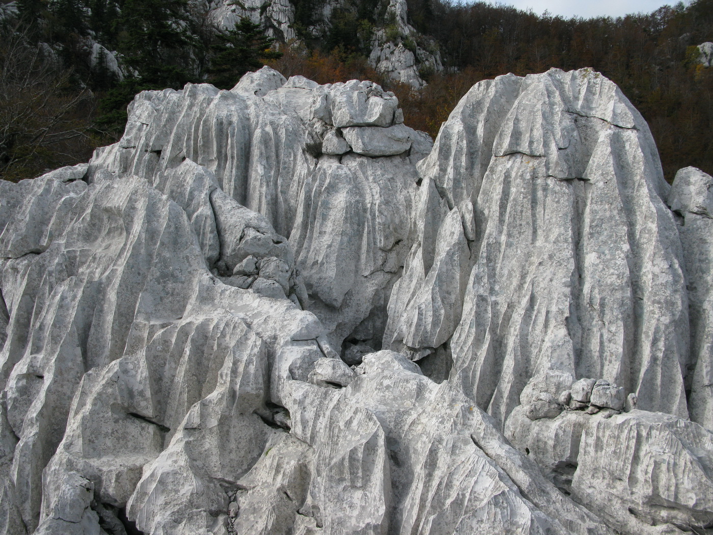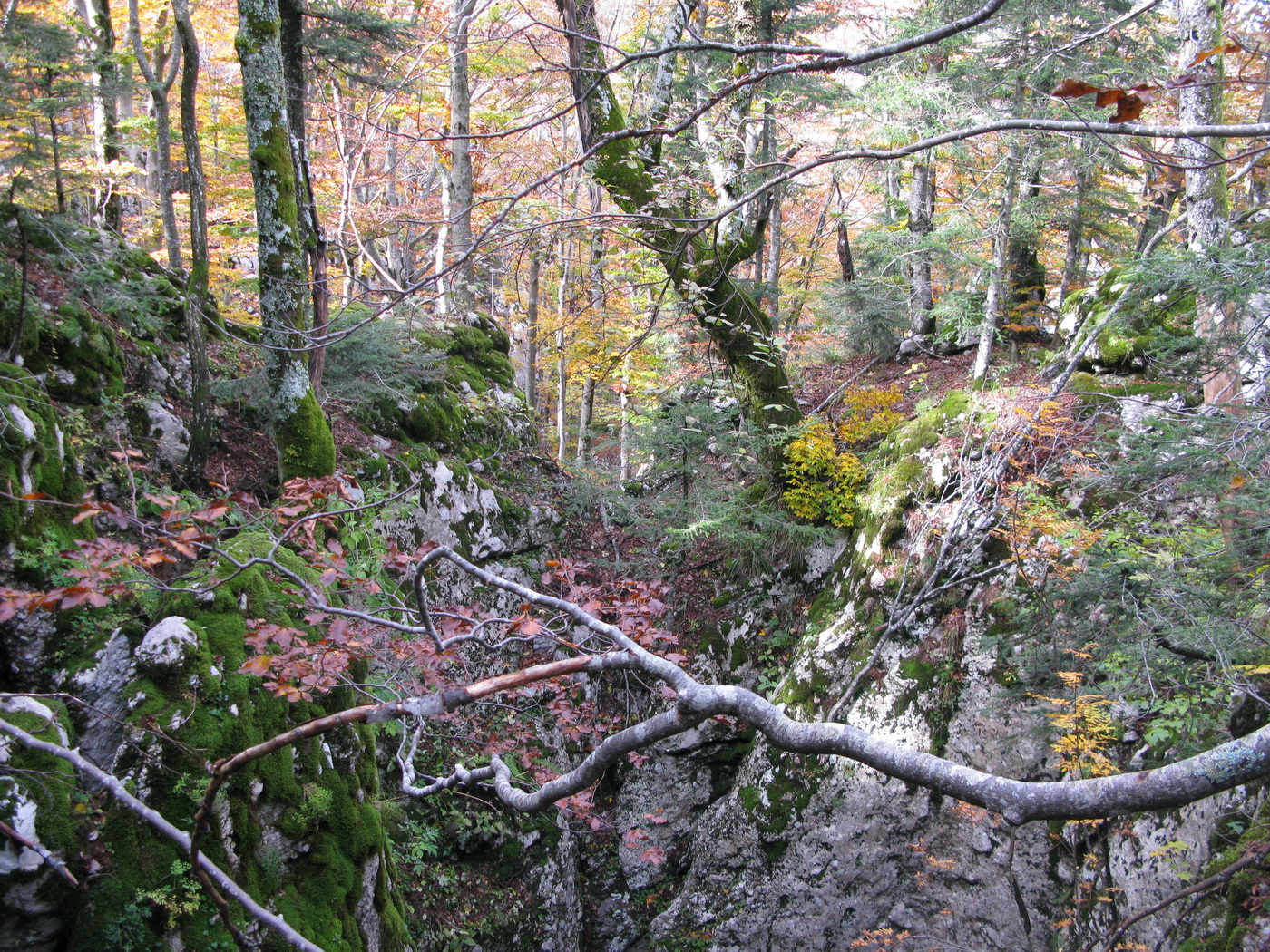 Po prestávke na chate (nikoho sme nestretli) prišlo na rad to, po čo sme sem prišli. Krátky presun bukovým pralesom, ktorý o drevorubačoch ešte nepočul, a stojíme pri rázcestníku. Put Malog princa je okruh, dal by sa ísť oboma smermi. Rozhodujeme sa ísť vpravo a okruh tak zakončiť výstupom na Bili Kuk. Zakrátko prichádzame po dobre vyznačenom chodníku k prvej "atrakcii", ako sme ich neskôr nazvali.