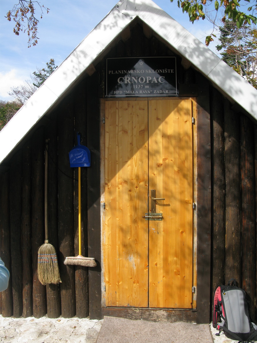 Na túru sme vyrazili s mapou Južného Velebitu, ktorú sme kúpili priamo v Paklenici v obchodíku v kaňone. V mape je aj podrobný výrez práve tejto oblasti (foto). Vzhľadom na dĺžku trasy sme zvolili ľahšiu a rýchlejšiu prístupovú cestu do centra Crnopacu, kde sa Put Malog princa nachádza. Asi po hodine a pol sme prišli ku chatke/útulni, ktorá patrí domácemu turistickému klubu. Chatka bola otvorená, je prístupná všetkým. Žasli sme nad čistotou a vybavením. Toto sme na Slovensku nikde nevideli...