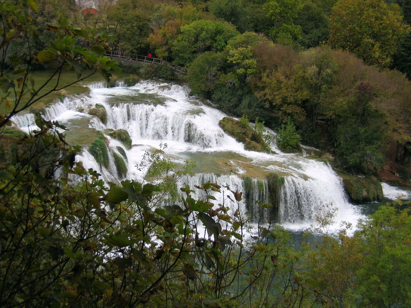 My sme sa tentoraz vybrali k vodopádom od mestečka Skradin. Nevedeli sme, že v cene lístka je aj doprava loďou a tak sme autom prišli až k mostu kúsok za Skradinom. Tu sme si v pokladni kúpili lístok a išli sme popri rieke peši asi 2,5 km k vodopádom. Pod vodopádmi sa dá dokonca kúpať, ale pod padajúcu vodu vás už nepustia. Sú tam natiahnuté bóje a je tam človek , ktorý na to dáva pozor.