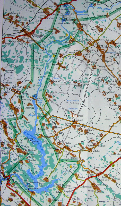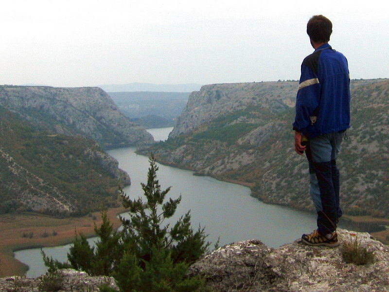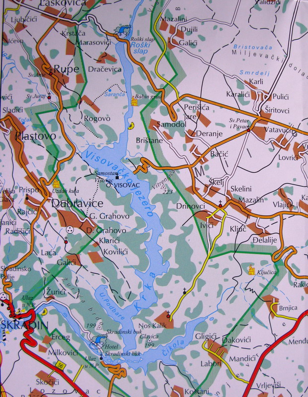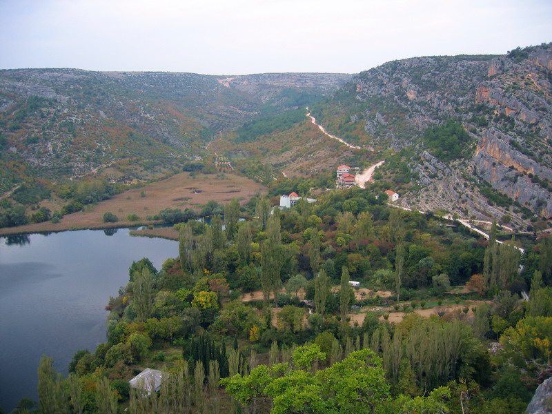 O dva dni nato vyrážame z našej základne pri Zadare na prieskum horného toku rieky. Vďaka diaľnici sme za necelú hodinku pri Skradine a púšťame sa po cestách tretej triedy na orientačný výlet autom. Vďaka novému značeniu sa nám darí nezablúdiť a blížime sa k Rošskému slapu.